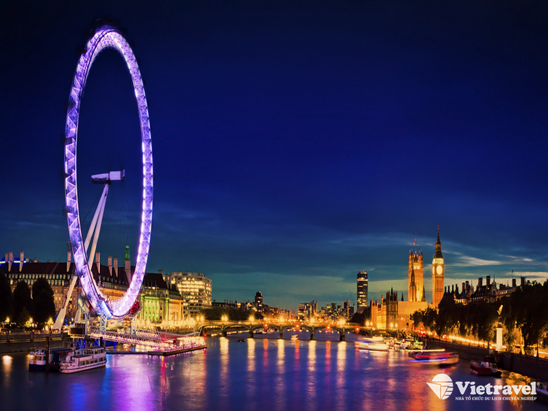 Trưởng đoàn Vietravel đón Quý khách tại ga đi quốc tế của sân bay Tân Sơn Nhất và hỗ trợ làm thủ tục đón chuyến bay thẳng đến Thủ đô London – Vương quốc Anh. Đến nơi, Trưởng đoàn hỗ trợ Quý khách làm thủ tục nhập cảnh và di chuyển đến nhà hàng dùng bữa tối. Sau đó, Đoàn di chuyển đến khách sạn nhận phòng nghỉ ngơi.