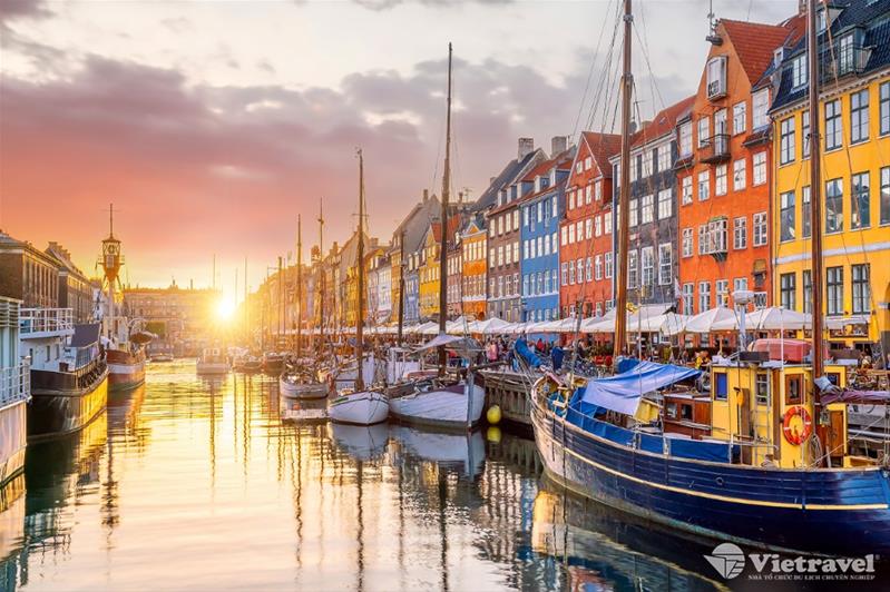 Ăn sáng và trả phòng khách sạn. Đoàn di chuyển vào trung tâm thành phố, tham quan và ngắm nhìn biểu tượng của thành phố Copenhagen với: Bức tượng Little Mermaid khắc họa cô gái người cá bé nhỏ với ánh nhìn xa xăm về phía đại dương; Quảng trường Thành phố và Bức tượng của Nhà văn Andersen còn được biết đến là ông hoàng kể chuyện cổ tích ở gần đó; dạo bước và tự do mua sắm trên Phố Stroget nhộn nhịp. Đoàn chiêm ngưỡng Khu phố kênh đào Nyhavn với những nhà phố, quán xá màu sắc đã có từ thế kỷ XVII và những chiếc tàu gỗ nằm san sát nhau; Đài phun nước Nữ thần Bắc Âu Gefion và khám phá huyền thoại. Sau bữa trưa, Đoàn khởi hành ra sân bay, làm thủ tục lên chuyến bay về nước. (Chuyến bay quá cảnh tùy hãng hàng không).