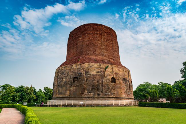 - Bảo tháp Dhamekh Stupa – Bảo tháp Dhamek Stupa là một bảo tháp đồ sộ nằm trong khuôn viên vườn Lộc Uyển, có nguồn gốc từ thời tiền Phật giáo, trong đó các nhà tu khổ hạnh được chôn cất trong tư thế ngồi gọi là chaitya.