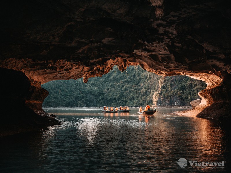 - Quý khách tập trung tại quầy lễ tân, các thuyền viên sẽ hướng dẫn đưa Quý khách vào tham quan Hang Sáng - Tối, khám phá vẻ đẹp của hang bằng cách chèo thuyền kayak hoặc ngồi thuyền nan do người dân địa phương chèo. Đây là một vị trí thơ mộng và tuyệt đẹp, đóng vai trò như một lối dẫn đến một hồ nước yên tĩnh, được bao quanh bởi những bức tường đá với nhiều quy mô và kích thước khác nhau.