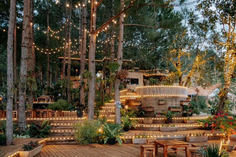 - Thư giãn tại quán Seven-T Coffee nằm giữa rừng thông, bể bơi vô cực giữa rừng nhiệt đới