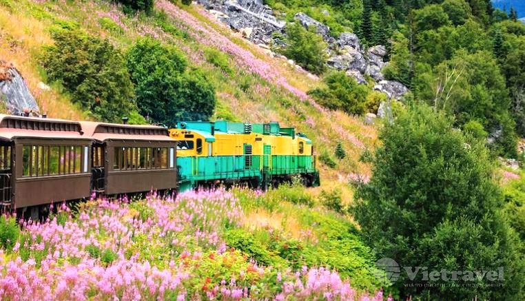 + Ngồi trên chuyến tàu lửa cổ kính White Pass Scenic Railway tại Skagway và chiêm ngưỡng khung cảnh thiên nhiên ngoạn mục, cùng lắng nghe những câu chuyện về Cơn sốt vàng Klondike.