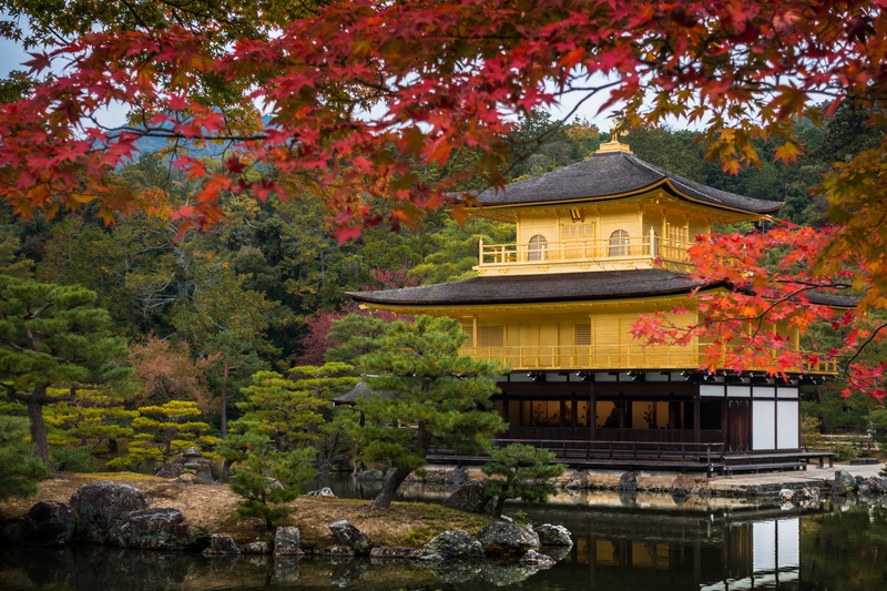 - Đền Vàng Golden Pavilon – Kinkakuji - ngôi đền nổi tiếng với tầng thượng làm bằng vàng rực rỡ, tạo nên một kiến trúc vô cùng lộng lẫy và độc đáo. Bao quanh công trình là một khu vườn rộng lớn với nhiều loại cây xanh tạo nên không gian thanh tịnh cho ngôi chùa. Đến đây, Quý khách không những chiêm ngưỡng công trình kiến trúc ấn tượng mà còn hiểu thêm về lịch sử và văn hóa địa phương thông qua các bức tượng mang đậm dấu ấn lịch sử.