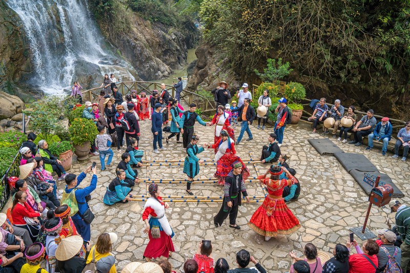 - Bản Cát Cát - đẹp như một bức tranh giữa vùng phố cổ Sapa, nơi đây thu hút du khách bởi cầu treo, thác nước, guồng nước và những mảng màu hoa mê hoặc du khách khi lạc bước đến đây. Thăm những nếp nhà của người Mông, Dao, Giáy trong bản, du khách sẽ không khỏi ngỡ ngàng trước vẻ đẹp mộng mị của một trong những ngôi làng cổ đẹp nhất Sapa. Tại đây Quý khách xem chương trình biểu diễn văn nghệ của người H'Mông.