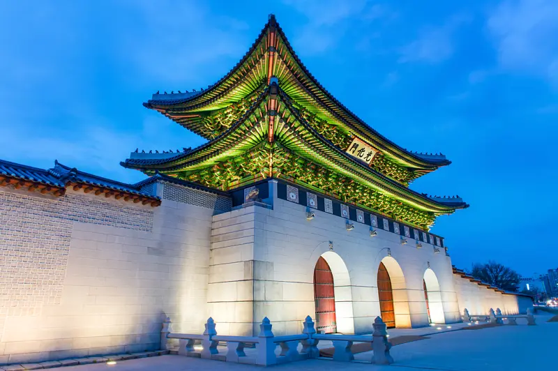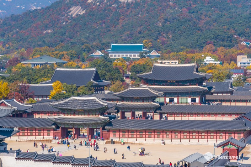 - Sau đó, đoàn tham quan Cung điện Hoàng gia Gyeongbok - Đây là nơi ở chính của Hoàng gia trong suốt vương triều Chosun (1392-1910). Cung điện này có 7225 phòng với thiết triều nguy nga cùng với những sảnh đường tao nhã trang nghiêm. Điện Gyeongbok được coi là công trình nghệ thuật nổi tiếng có lối phong cách kiến trúc độc đáo và đẹp nhất ở Seoul. Quý khách trải nghiệm mặc áo Hanbok - trang phục truyền thống của Hàn Quốc tại đây