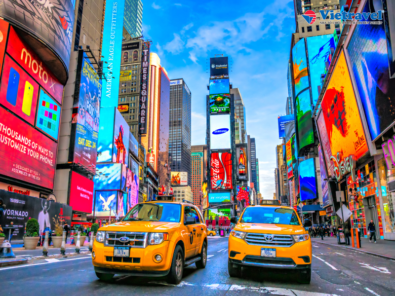 • Đến New York thành phố lớn nhất Mỹ, sở hữu những điểm đến nổi tiếng như tượng Nữ thần Tự Do, Trụ sở Liên Hiệp Quốc, Rockefeller Center, Wall Street, Ðại lộ Broadway...