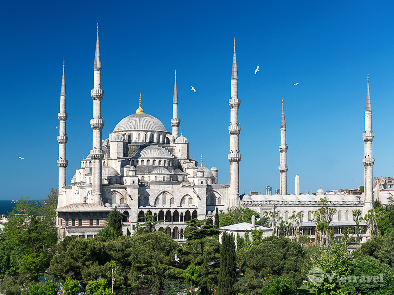 - Khám phá Istanbul – thành phố duy nhất trên thế giới nằm giữa hai lục địa Á – Âu với những điểm tham quan đặc sắc: Blue Mosque, Hagia Sophia, Cung điện Dolmabahçe, khu đô thị Istiklal,…