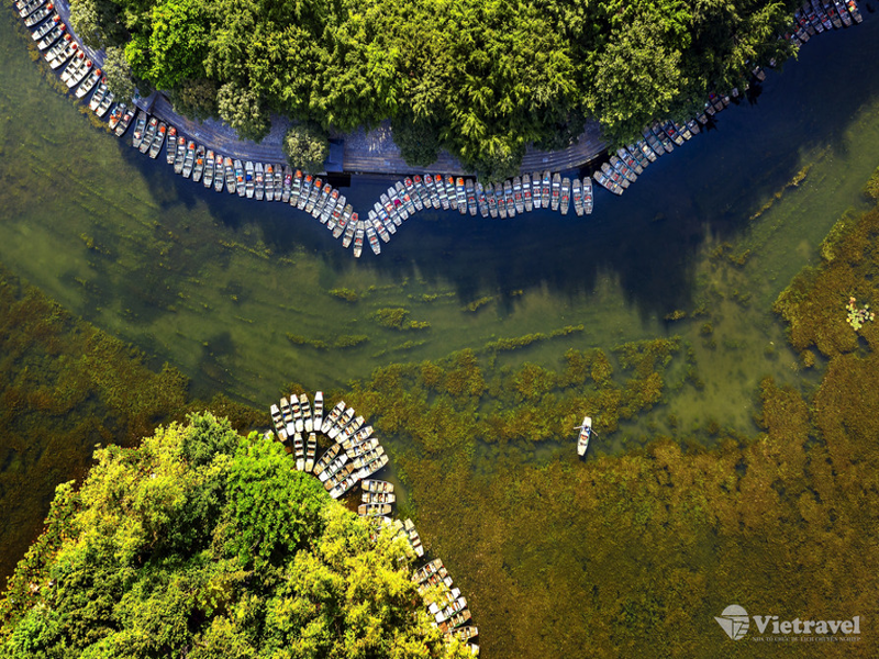 - Khu Du Lịch Tràng An - Quý khách lên thuyền truyền thống đi tham quan thắng cảnh hệ thống núi đá vôi hùng vĩ và các thung lũng ngập nước, thông với nhau bởi các dòng suối tạo nên các hang động ngập nước quanh năm. Điểm xuyến trong không gian hoang sơ, tĩnh lặng là hình ảnh rêu phong, cổ kính của các mái đình, đền, phủ nằm nép mình dưới chân các dãy núi cao.