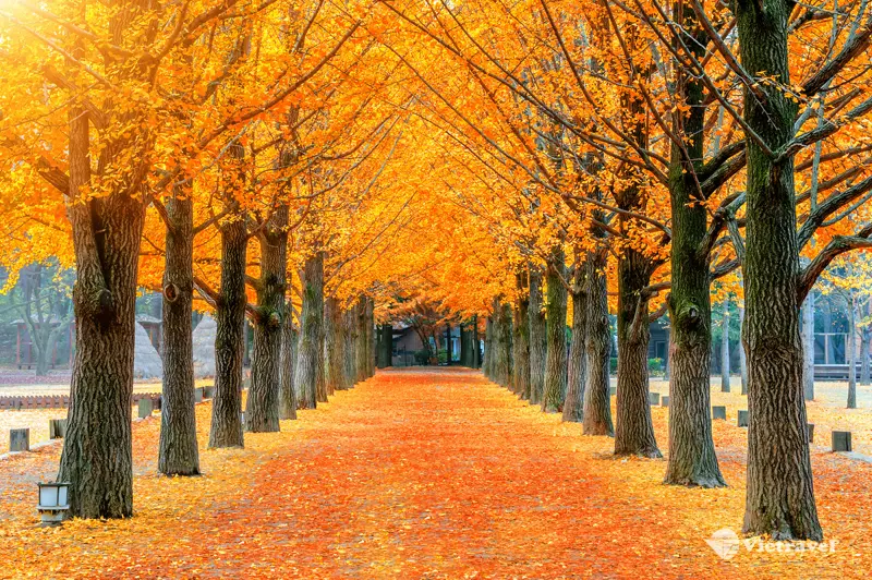 - Đảo Nami - nằm cách thủ đô Seoul ~63 km, Đảo Nami xinh đẹp và bình yên bởi hệ thực vật với hơn 200 loại cây khác nhau. Nổi tiếng nhất là những tán lá phong cùng hàng ngân hạnh thẳng tắp đã từng xuất hiện trong bộ phim “Bản tình ca mùa đông.